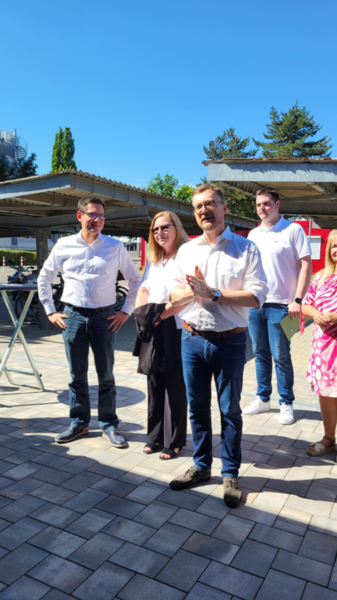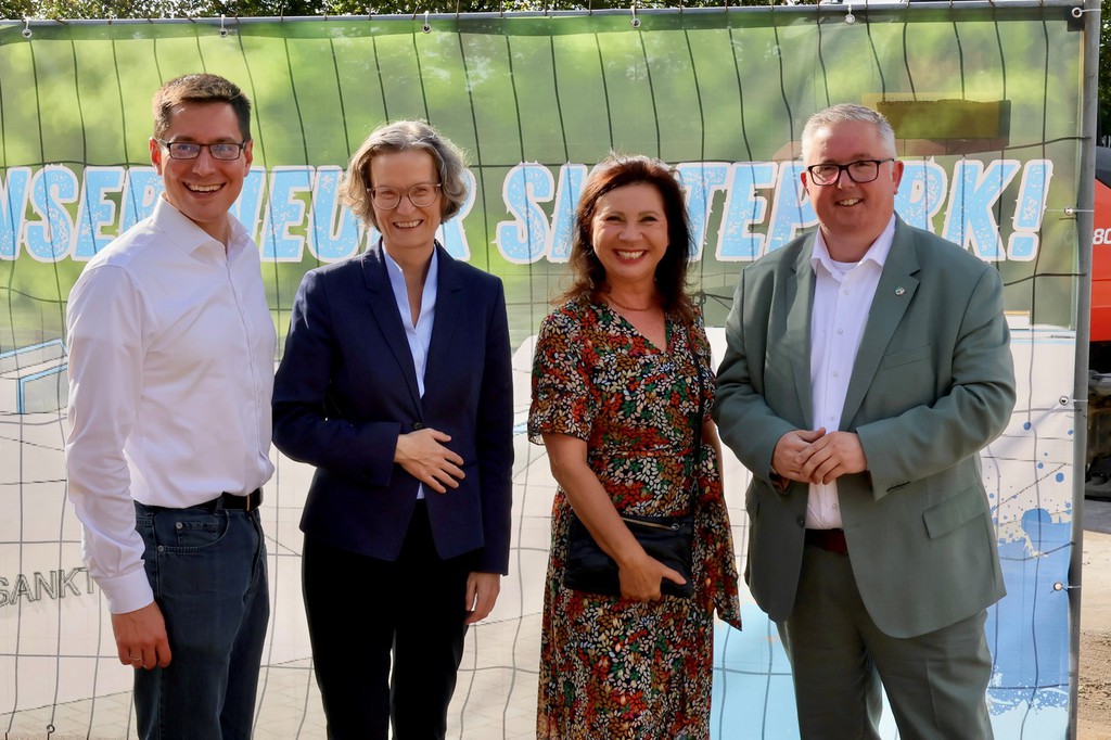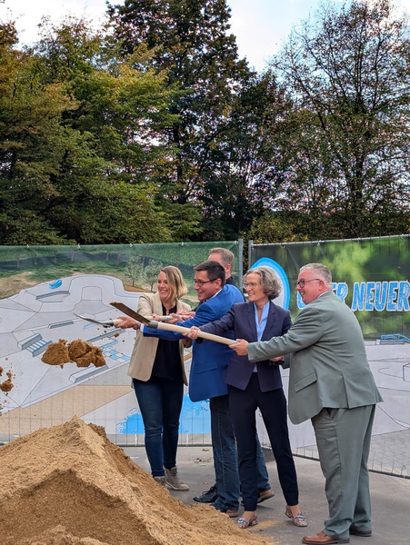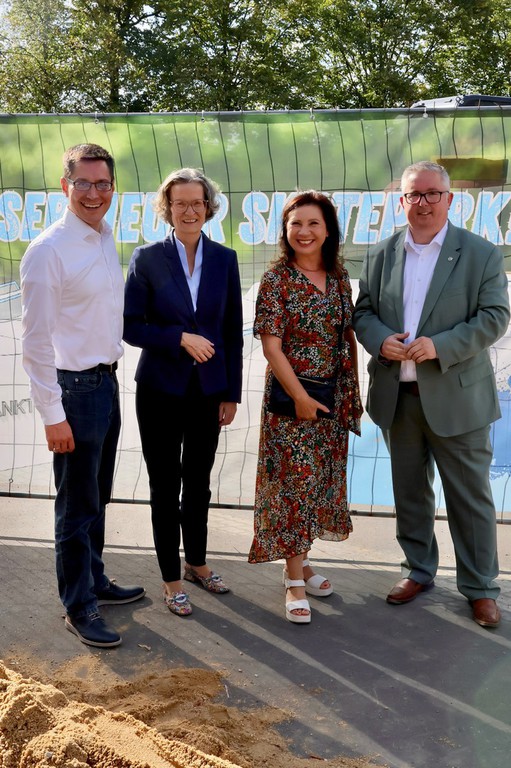 Am 03.09.25 traf sich der Bürgermeister Dr. Max Leitterstorf mit den Landtagsabgeordneten sowie der NRW-Kommunalministerin Ina Scharrenberg zum Spatenstich des neuen Skaterpark am Schwimmbad.