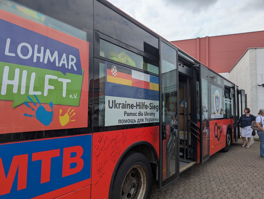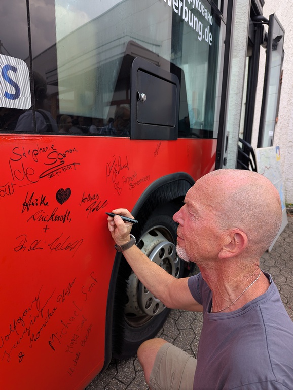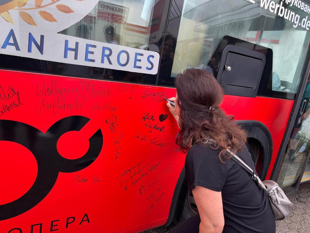 29.07.25/ „Sankt Augustin and friends hilft“ unterstützt mit einem roten Kulturbus die Künstler und Künstlerinnen des Theaters in Charkiw. Diese wollen kulturelle Veranstaltungen nahe der Front anbieten und somit ein Stück Normalität und seelische Unterstützung in die ukrainischen Kriegsgebiete bringen. Der rote Bus wurde von mehreren Hilfsorganisationen, Stiftungen und privaten Spendern finanziert. Am Tag der Vorstellung, konnten alle Besucher mit ihrer Unterschrift auf dem Bus, ein Zeichen für Solidarität setzen.