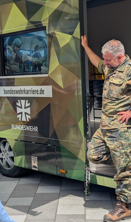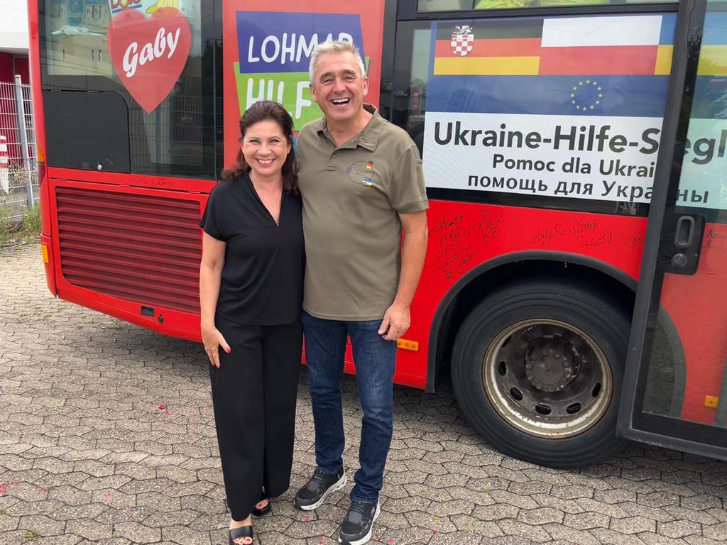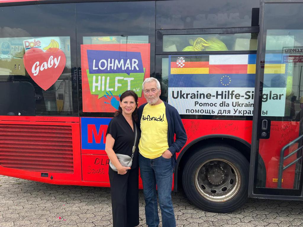 Stephanie Sboron vom Aufbruch! Sankt Augustin sprach u.a. mit Frank Zöller, welcher den roten Bus in die Ukraine bringen wird.