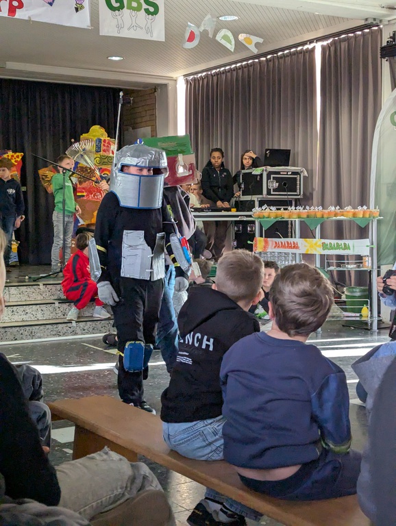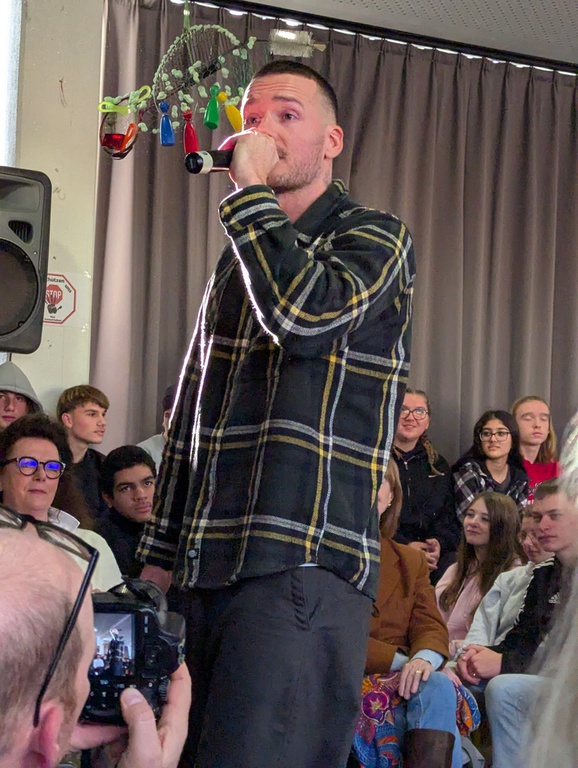 11/2025 Bei der Gutenbergschule hieß es: 'Gutenberg goes arp'. Die Schülerinnen und Schüler, das Kollegium und die Schulleitung der Gutenbergschule präsentierten die Ergebnisse der Projektwoche „Gutenberg goes arp“. In enger Kooperation mit dem arp-Museum Rolandseck hatten die Schülerinnen und Schüler zu Dada und Anti-Rassismus Skulpturen gebaut, Kostüme und Masken hergestellt, Lautgedichte verfasst und Collagen angefertigt. Dies alles wurde bei der DADA Show vorgestellt. Philipp Gruber alias Phily Van begleitete als prominenter Pate den Beitritt zum Netzwerk „Schule ohne Rassismus - Schule mit Courage“. Alle waren begeistert als Philipp noch drei seiner Songs 'rappte'. Es war eine tolle Veranstaltung und der Aufbruch! war auch dabei ....